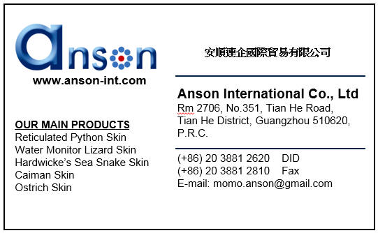 Please contact us for our products information, product catalogue, products pricing, as well as any snake skin related business. We promised to deliver the best services that we could.